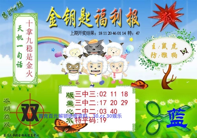 | 281期:【金钥匙福利报】【开羊47】 破解图文:龙凤呈祥得生肖 高手七肖:狗蛇羊猴兔猪鼠 高手五肖:狗蛇羊猴兔 高手三肖:狗蛇羊 |